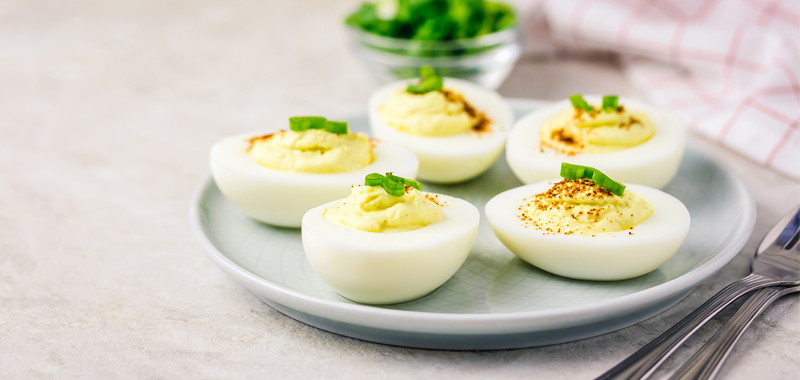 Farcir les blancs d’œufs délicatement avec la préparation.