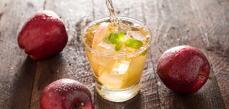 Servir le jus de pomme bien frais en ajoutant des glaçons au besoin.
